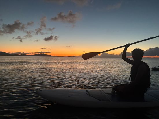 石垣島で最も美しい夕日が見れる海のスポットを島んちゅガイドがご案内いたします。サンゴ礁のおかげで自然の防波堤ができるため、波は穏やか。漕いでもよし、座って眺めるもよし。自由な形でサンセットをお楽しみください。水平線に落ちるサンセットはとてもキレイです。