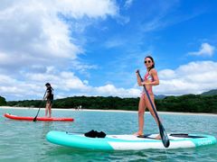 エメラルドグリーンの海と真っ白に輝く砂地でSUP体験、透明度抜群の川平湾を満喫
