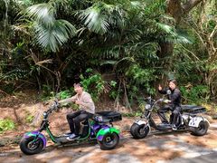 電動三輪で安定した走行が魅力的なEVトライクを運転して、石垣島の観光スポットをまわろう!ガイド付きツアーなので、慣れない道もガイドが先導してくれるので安心。天然の滝での自然遊びも楽しめます