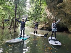 ガイドの説明を受けた後、いよいよSUP体験スタート!希少なマングローブの中をゆっくりと漕ぎ進みます。自然の美しさを感じながら、リラックスした時間をお楽しみください。