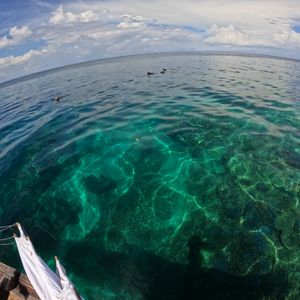 風でゆったりとした流れのサバニ船で、まじかにサンゴやウミガメを眺めながら海を近くに感じた素敵な時間でした。ツアーの写真を頂いてこんなに綺麗な海でシュノーケリングしたのかと思うと感激でした。
