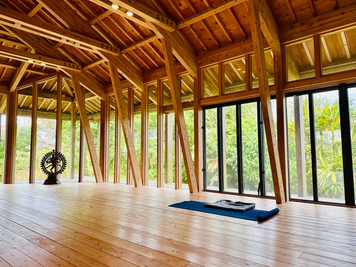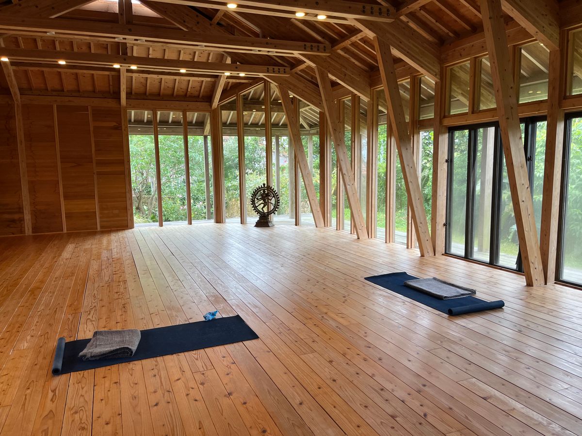ヨガリトリートヴィレッジクシャナのスタジオは森を感じながらヨガができる、街中のスタジオでは感じられない空間でした。