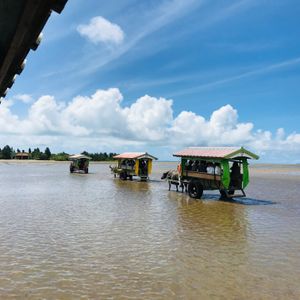水牛車で由布島へ渡ります。水牛の騎手さんが、水牛について詳しく話してくださり、楽しかったです。また、三線の演奏も聴け、よい体験になりました。