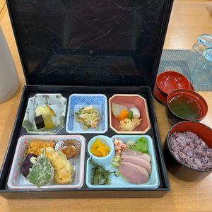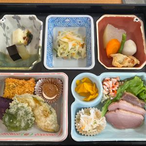 お昼はちゃんと土地の物のおかずが沢山ありお腹いっぱいになります。そこからの景色もとても美しいです。