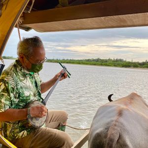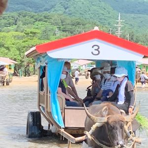 由布島までは水牛車で移動します。ガイドさんの三味線は癒されます。