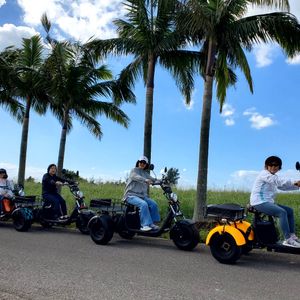 初めての三輪バイクはドキドキでしたが、丁寧なレクチャーと練習で、フサキビーチ目指してゴー。1人乗りも爽快だけど、3人乗りもみんなでワイワイ言いながら楽しい😆