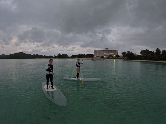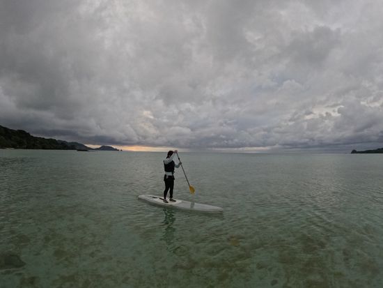 曇り空で夕陽が見れるか心配でしたが、西の空だけ晴れてくれて素敵なサンセットSUPができました!海の上で見る夕日は特別感があり、気持ちがとても安らぎしました。青い魚と、たくさんのなまこもいましたし、ガイドさんとわいわい体験ができたのも楽しかったです!参加者が私たち2人しかいなかったのにも関わらず、片道40分程度のところまでお迎えに来ていただきありがとうございました( ; ; )次はもっと快晴のときにも体験してみたいです!本当にたのしかったー!