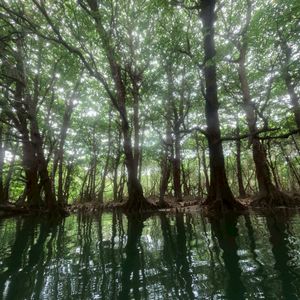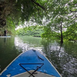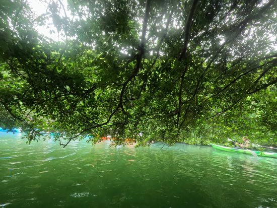 数種類のマングローブに囲まれた河をカヤックで進んでいきます。マングローブの下を潜ったり、潮位が高い時は洞窟の中にも入れるようで探検家になったような気分で楽しめました。