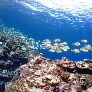 ガイドのお姉さんが話しやすく、色々と説明も丁寧にして下さいました。水中でバブルリングを作って写真を撮って頂きました。魚もたくさんいて、最高の夏の思い出になりました。