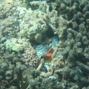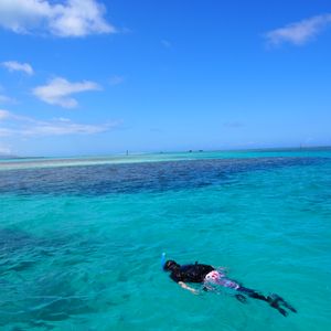 石西礁湖では、まず船の上で、詳しくシュノーケルなどの装着の仕方の説明があり、また海に入る際、一人一人丁寧に見てもらえたので、初心者の方には最適のツアーだと思います。潜っていってクマノミや私たちの写真を撮って下さり、いい思い出になりました。海はちょっと濁っていたかな。