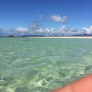 友達1人と、他にお客さんが1人、スタッフ2人の5人でした。30人くらい乗れる船に5人だけだったので、自由に動き回れました。30分ほどで幻の島、浜島に到着し、かなりの絶景に驚きました!透き通るエメラルドグリーンの海は永遠に見てられるほど綺麗でした!人は他に20人くらいいました。スタッフさんはとてと親切にたくさん写真を撮ってくれました(≧∇≦)その後シュノーケルの場所へ移動しました。シュノーケルは、潜るためにライフジャケットは着ずにやりました。スタッフさんがずっと近くにいてくれ、一緒にシュノーケルをしました。海の中で色々な技を見せてくれ、楽しめました。