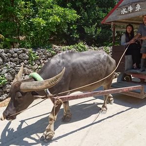 その後、竹富島に到着後、昼食券、水牛車券、レンタサイクル券をもらい、フリーとなりました。早速シャワーを浴びてから、昼食をとり、水牛車に乗りました。その後は、日差しが強かったので、自転車に乗るのはやめて、日傘をさしながら1時間ほど散策し、石垣島に戻りました。