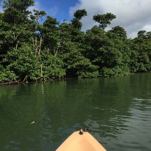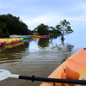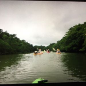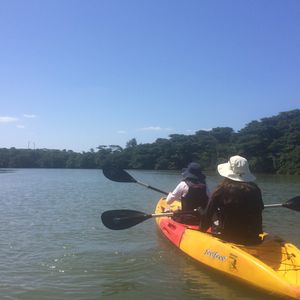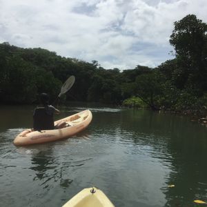 初めてのカヌー体験でしたがパッドの使い方講習があり安心して参加できました❗その後に2人1組でカヌーをこいでサンセットを見るために海の方に行きました。雨は降らなかったですが、天気が悪く残念ながら雲に隠れサンセットは見えませんでした。日が暮れだしてからマングローブ林に入りコウモリの姿を見たり、フクロウの声を聞いたりして探検みたいで楽しかったです!