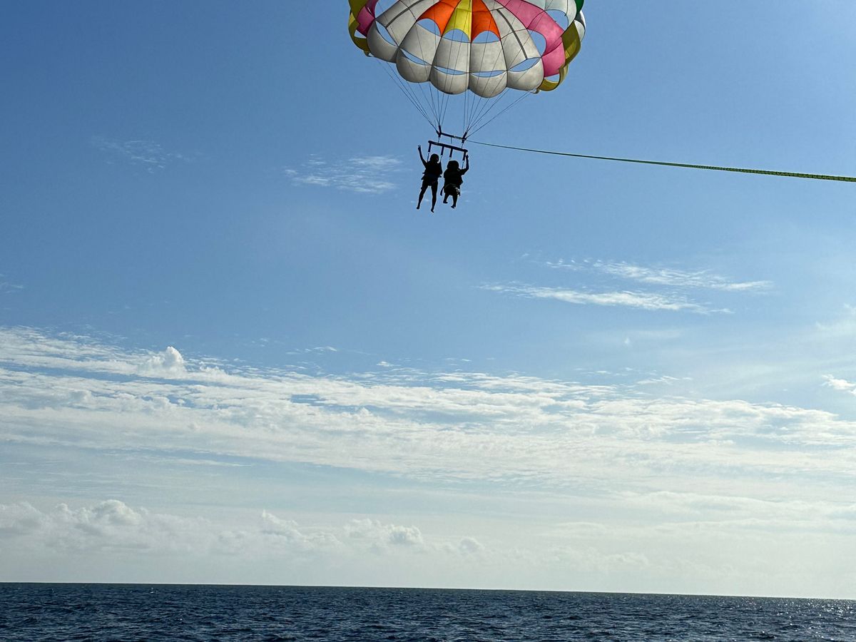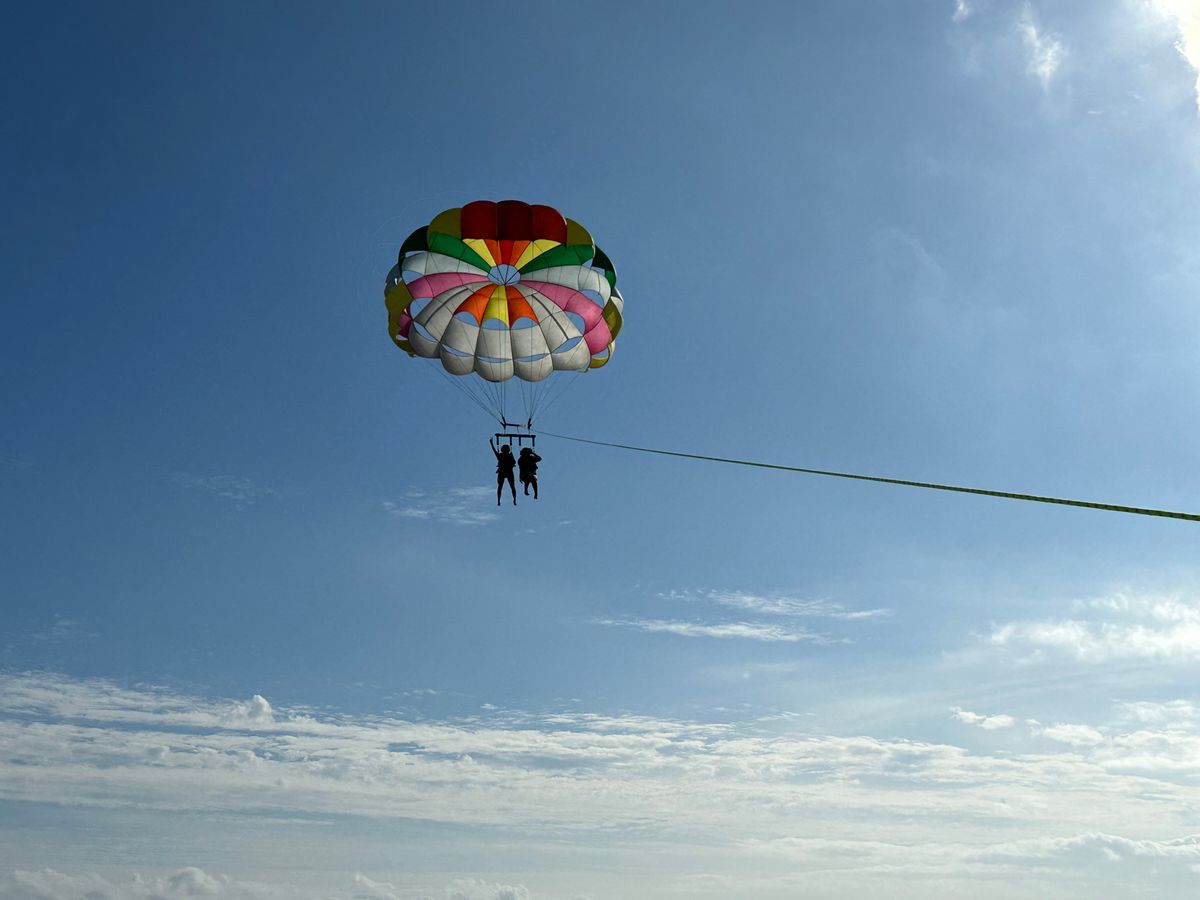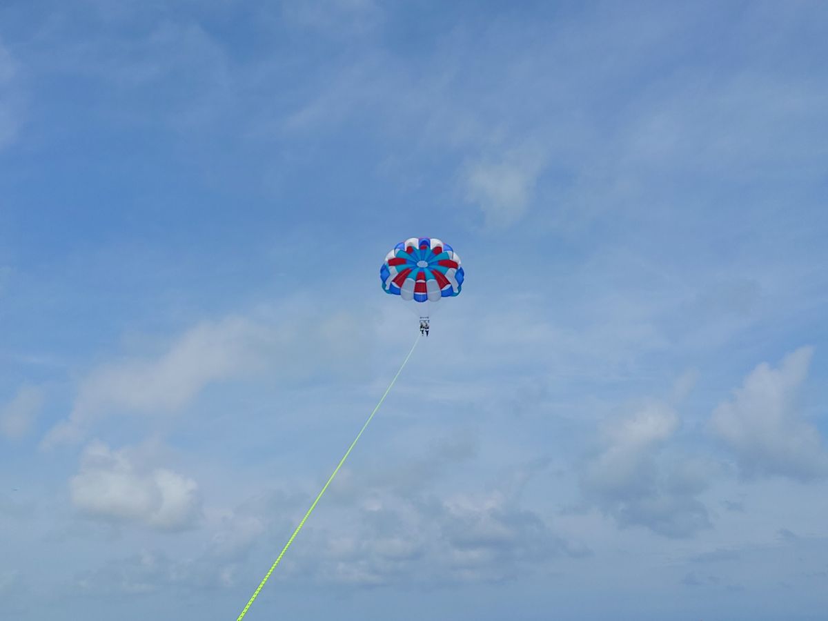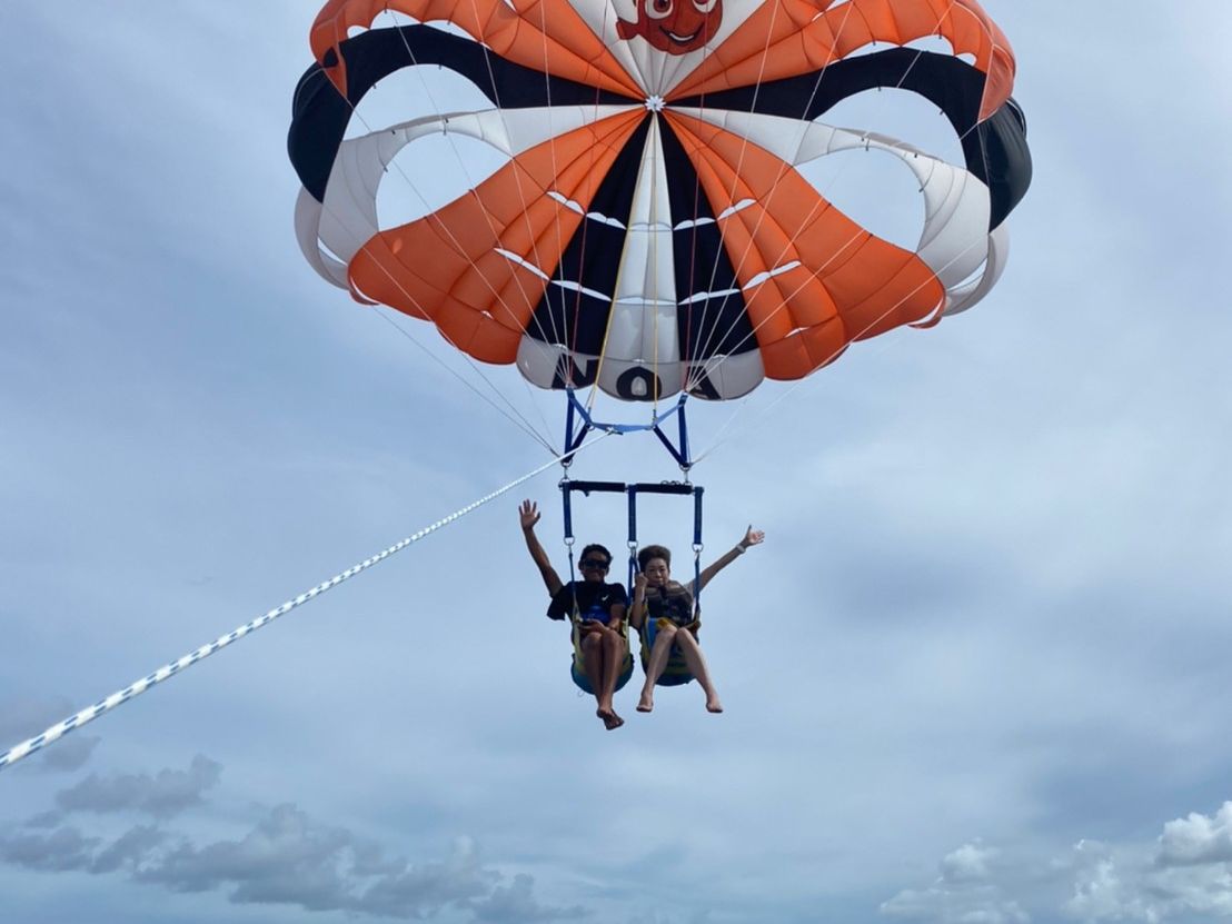初めてパラセーリングを体験しました!初めてで不安でしたがとても丁寧な説明とお姉さんの笑顔のおかげで不安が吹き飛びました写真も撮っていただきとても楽しむことができました!