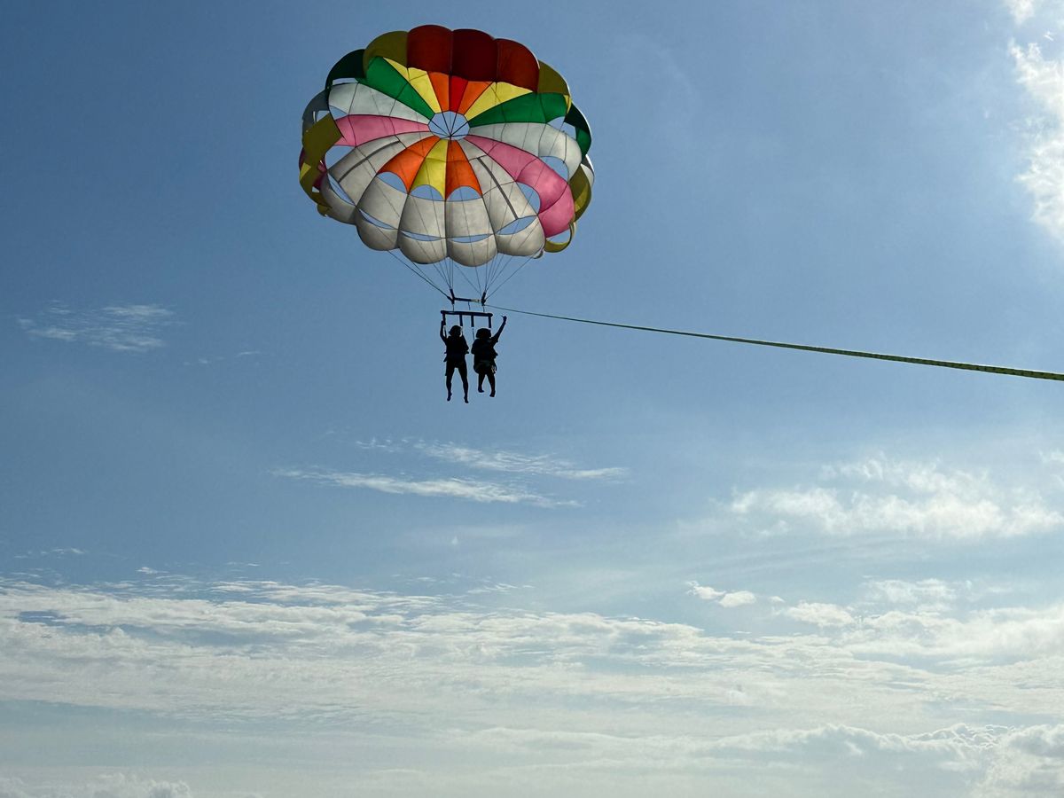 まずスタッフさんたちが、とても面白い方たちで、空を飛ぶ以外の時間も楽しかったです。帰りに携帯を忘れたのですが、走って持ってきてくださり、とてもいい方たちでした。また安全管理もきちんと行われており安心して体験を行うことができました。パラセーリングももちろん楽しかったです!!パラセーリングをするならここが当たりだと思います。ありがとうございました!