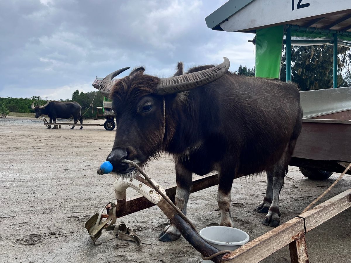 水牛車に由布島へ海を渡る往復と竹富島の散策で2回乗りましたが、趣が違って良かったです。
