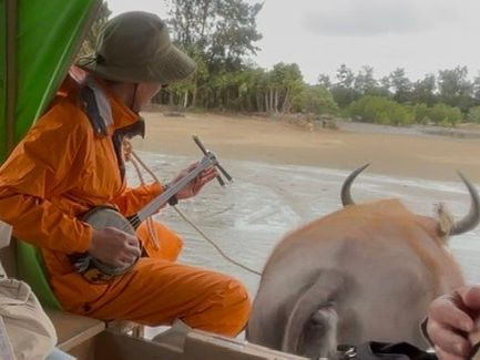 水牛さんに乗り 島唄を聞きながら