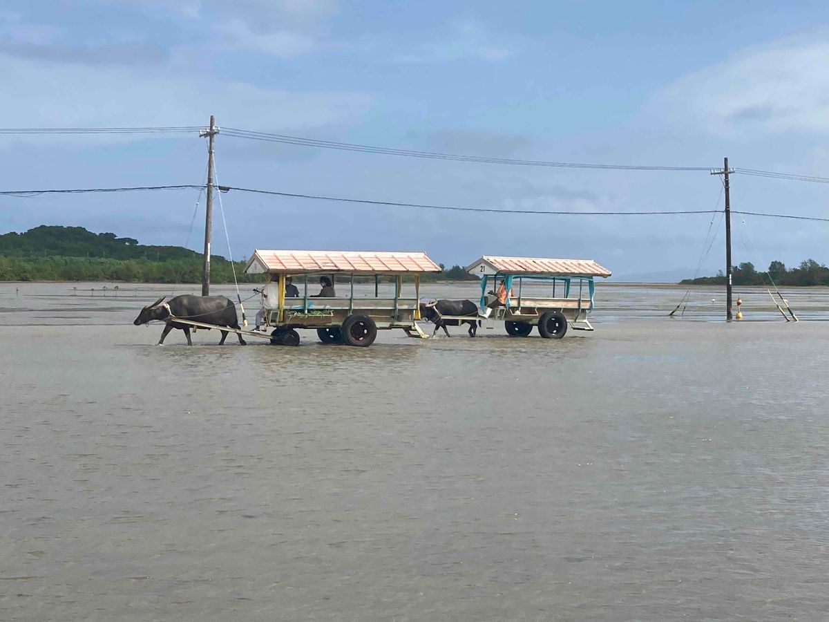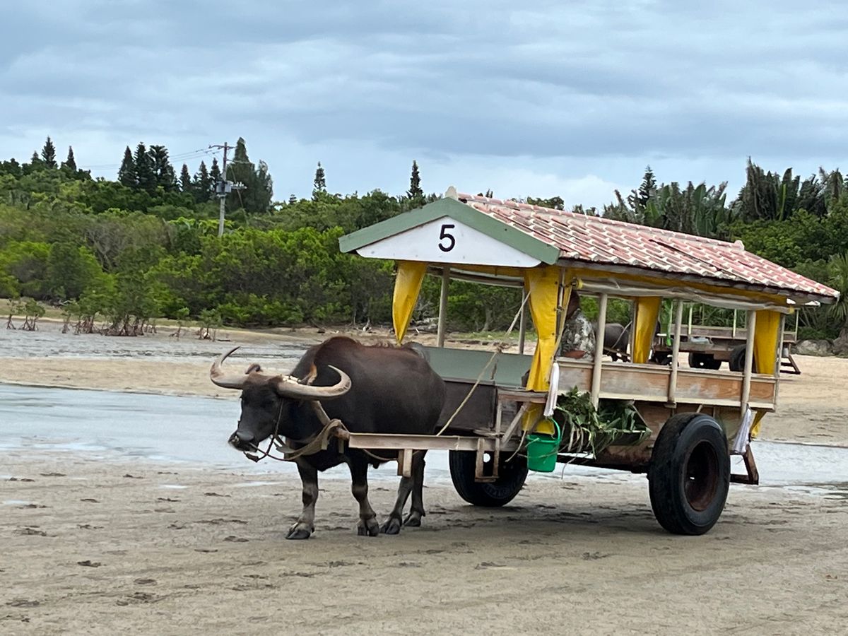 竹富島観光に行くなら水牛車に乗ってみたくて予約しました。7月のハイシーズンということもあり、平日でしたが当日予約は満席で出来ない状態なっていたので事前予約をしていって正解でした。水牛車は座っているだけで観光出来るのでかなり楽でした。水牛もおっとりしていて可愛く、スタッフの方の島唄も沖縄の雰囲気が味わえてよかったです!サイクリングや歩いている方もいましたが道に迷ってる人たちも見かけたので水牛車を選んでよかったなと思いました。帰りは各自解散になるので帰りの足を考えていた方がいいです。私たちはなにも知らずとりあえず近くのバス停に行き地域のバスの予約をして港まで戻りました。最後にスーツケースは持参しないほうがいいです笑。砂利道で歩くのが大変ですので。