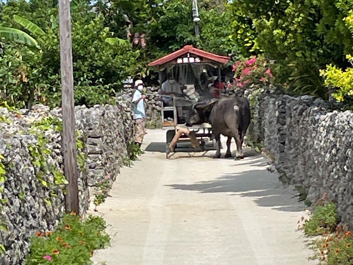 歩いた方が明らかに早い真栄君水牛車に乗ってお兄さんの三線唄聞きながら島巡りしました。4~5歩歩いて日陰で止まる感じ。の繰り返し