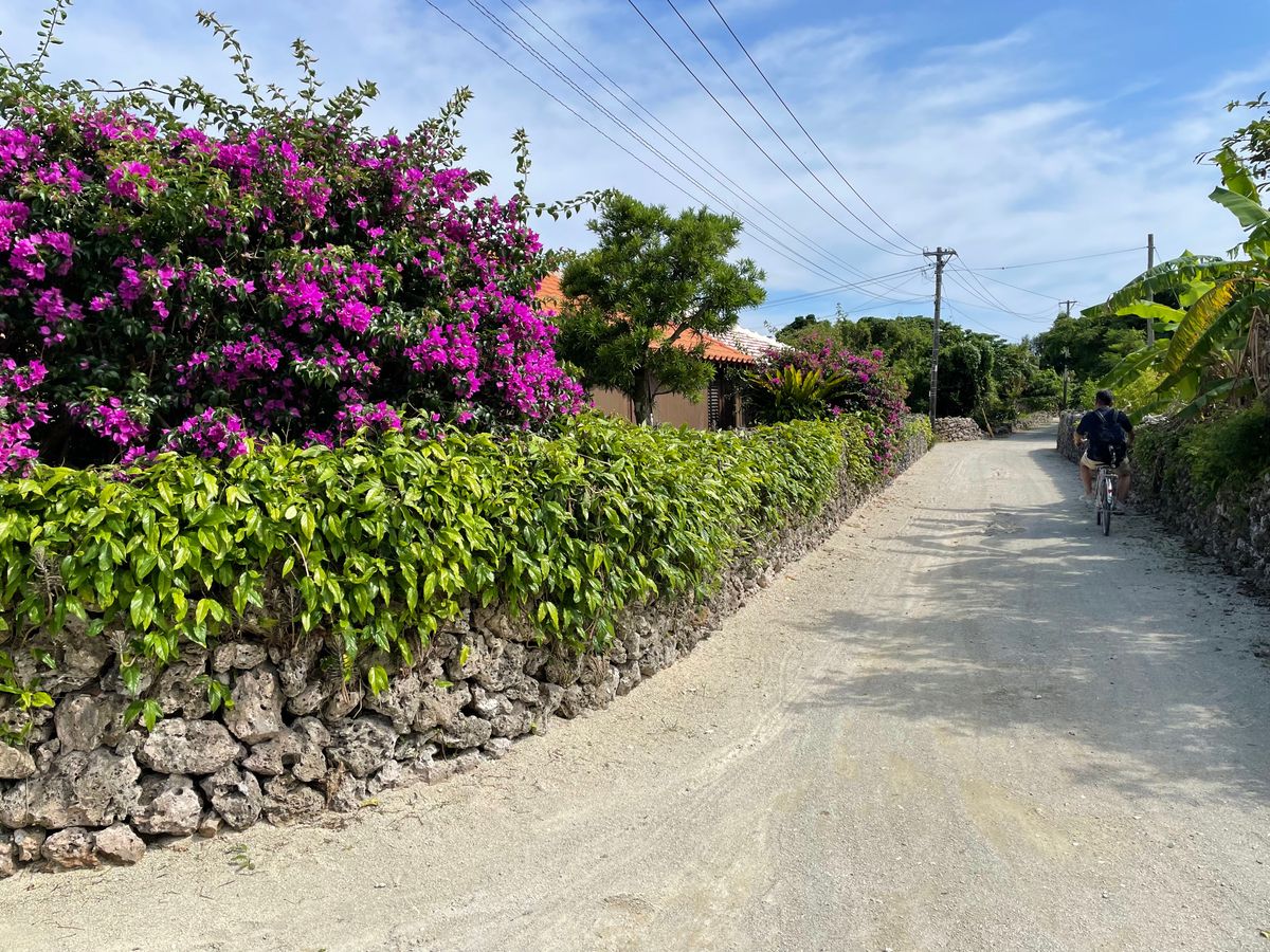 その後、竹富島の民家がある通りをお散歩させてもらいました。途中の商店でアイスキャンデーを食べたり、道で写真を撮ることができました。