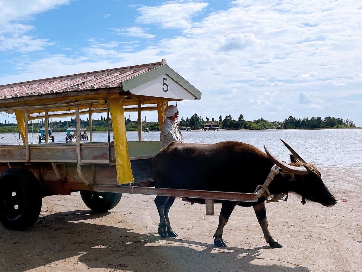 オフシーズンという事もあり、水牛車には私達含め7人で密になる事なく乗る事ができました。
