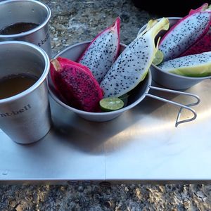 送迎付のツアーでしたが、ガイドさんが交渉してくれたらしくホテルのビーチから出港できました。途中のビーチでの休憩時に3種のドラゴンフルーツの食べ比べがあり、それぞれのフルーツの味の違いやシークワーサーをかけた食べ方などを教わりました。