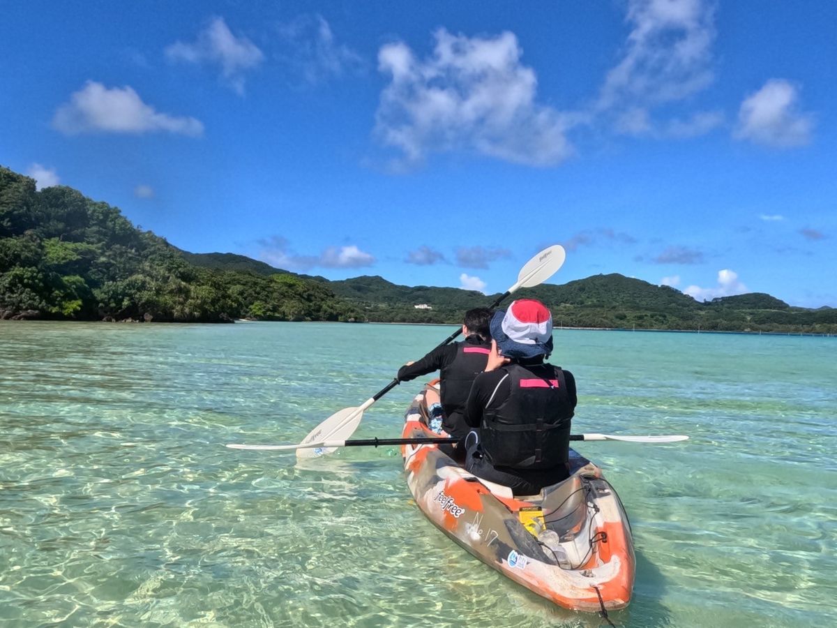 強風にてsupからカヤックへと変更になりましたが、川平湾の景色を一望できとても楽しい時間でした!インストラクターの方の感じも良く一緒に参加した方々とも楽しい時間を共有することができました(^^) 自分たちの手持ちのカメラで写真を撮ることもできましたが、インストラクターの方も撮ってくださるので安心ですし、自分たちでは撮ることのできない写真データを頂けて旅のいい記録になりました!