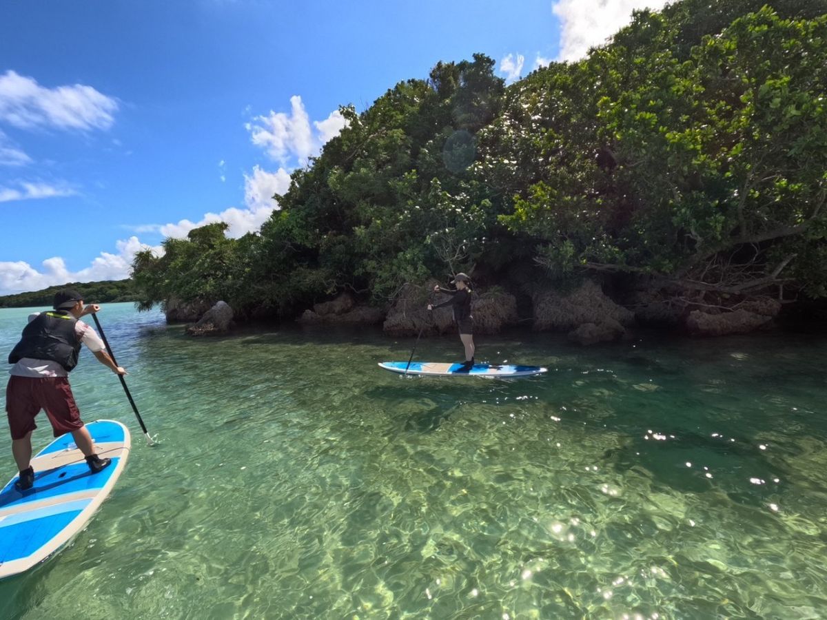 川平湾のサップツアーとシュノーケリングツアーに参加しました。サップは初めてで不安なところもありましたが、インストラクターの方が1から優しく教えてくださいました。そのお陰で、すぐに立って漕ぐことができ、とても楽しめました。また、サップスポットが「川平湾」であったため、360度綺麗な海が広がっており、充実した時間となりました。