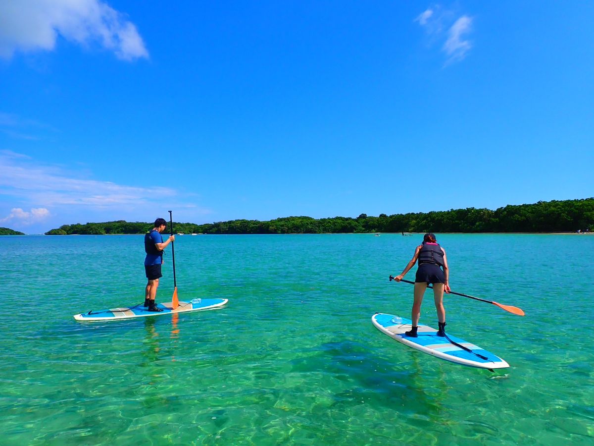 世界トップクラスの美しさを誇る川平湾の景色を満喫できます!波が穏やかでSUP初心者の自分達でも安心してアクティビティに取り組むことができました。