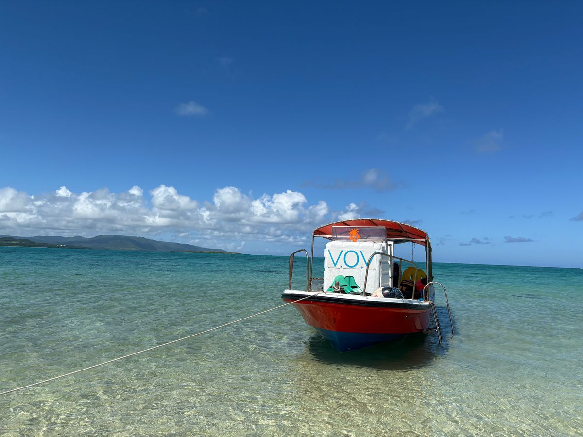 シュノーケルを担当してくださるところまで歩き(2,3分程度)、船に乗ってポイントまで移動。船も気持ちよかったです!シュノーケルを1時間ほど楽しんだら、幻の島に上陸!そのあとは戻り、シャワーを借りれました!