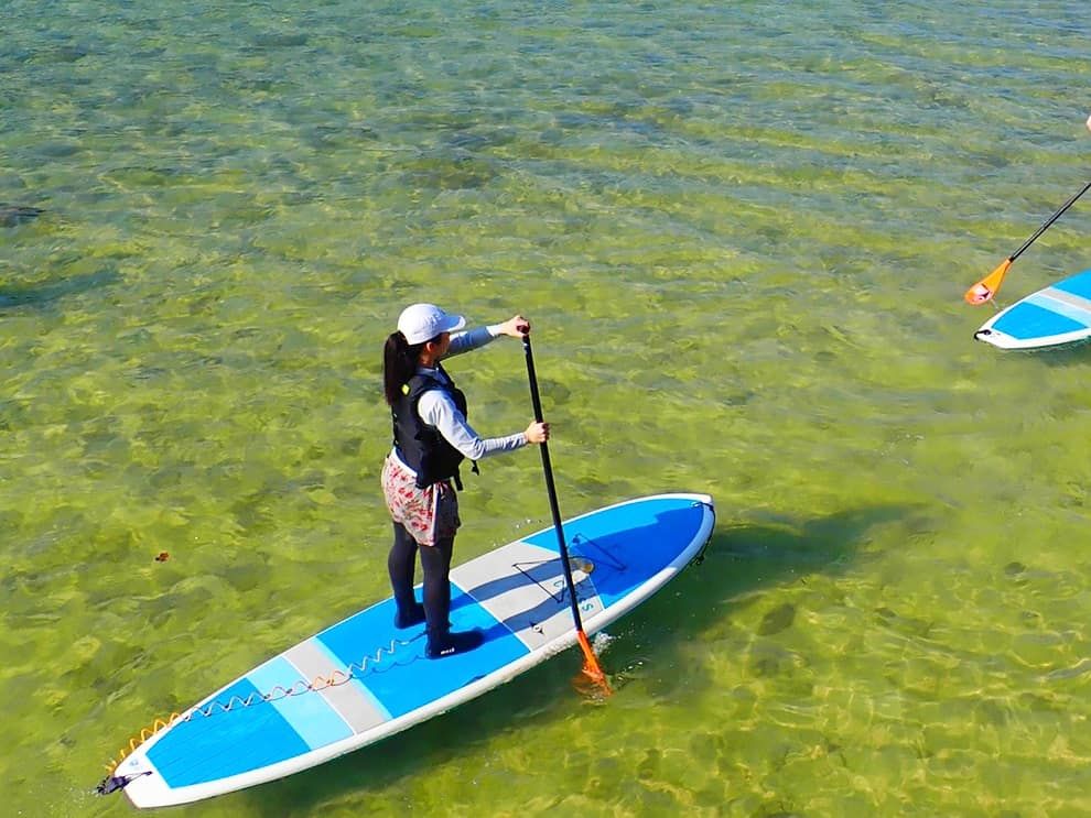 初めてのSUPでしたが、丁寧にレクチャーしていただき安心して楽しむことができました。座って漕いでみたり、寝そべってみたり、他のグループと一緒に進む形でも自由度が高く楽しかったです!パンフレットによく載っているビーチ側ではなく、奥の木々が生えたあたりまで案内していただくので、川平湾の景色としてもグラスボートとはまた違った雰囲気を楽しめると思いました!