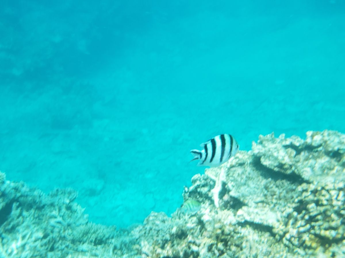 あいにくの嵐のような天気で、船も大きく揺れるような、荒波の中を進んで行きましたが、スタッフの方々が、不安を打ち消すような対応で、シュノーケリングの基礎講座〜潜っても、寄り添うような案内でサンゴ礁のポイントを案内してくれて大変良い思い出になりました!