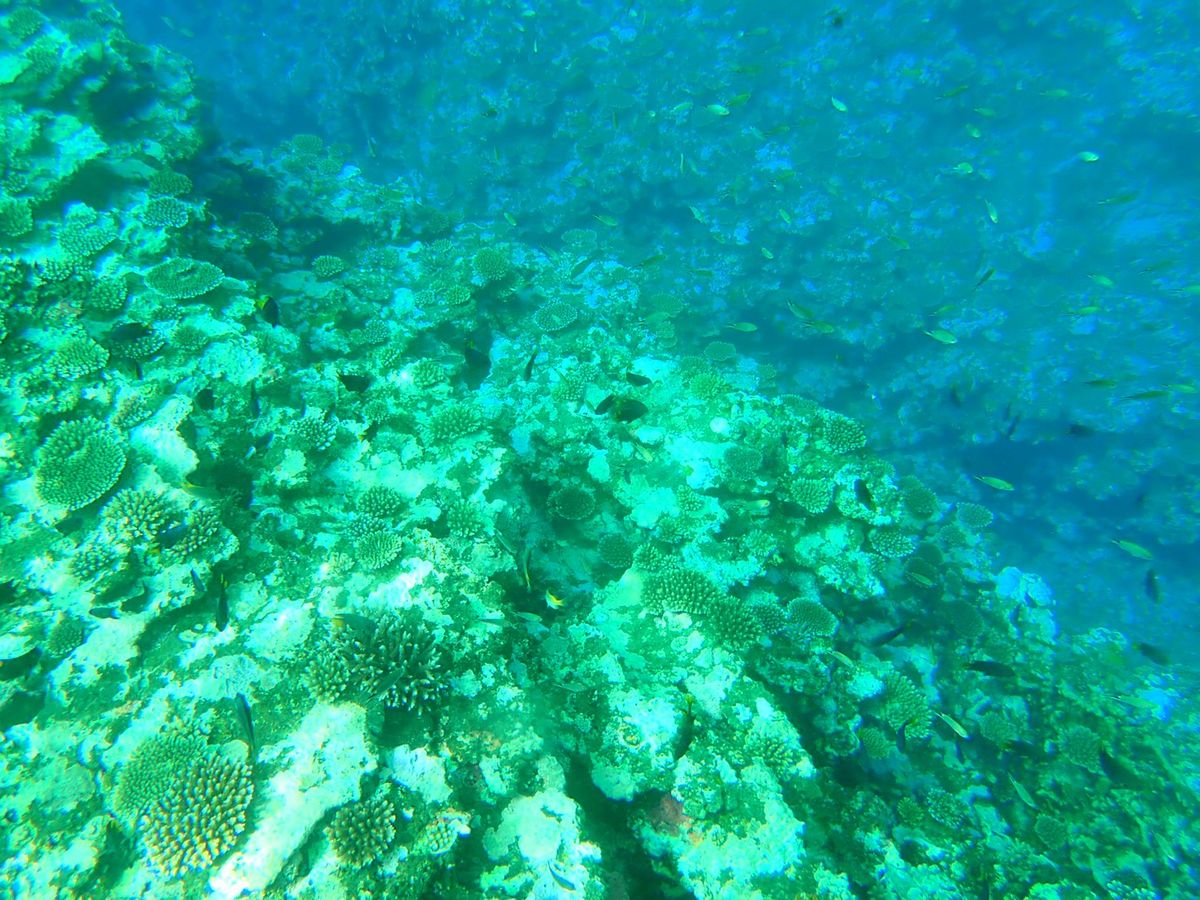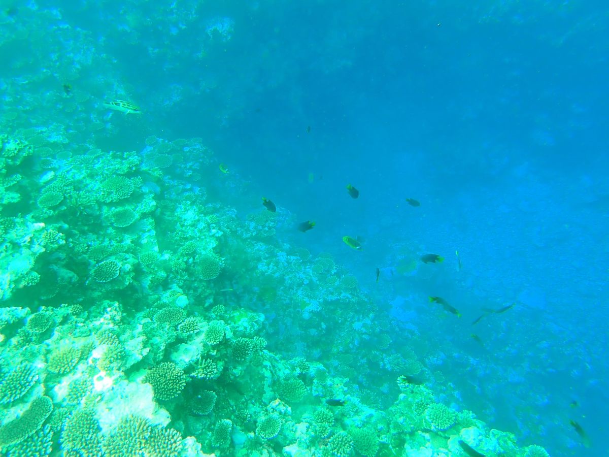 またシュノーケリングは、魚もみれたし、珊瑚礁は思ったより少なく感じましたが、青い珊瑚礁とてもキレイで感動しました。