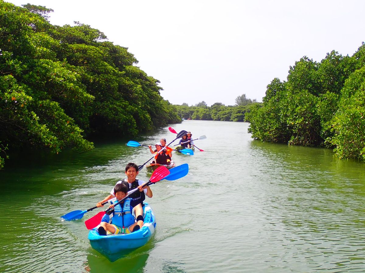 参加当日、午前中の川平湾カヌーツアーは強風により中止となり、宮良川に向かうことになりました。少し残念でしたが、いざ現地に着いてやってみるとそんなこと忘れて、最高に楽しむことが出来ました!みんなカヌーは初めてでしたが、すぐに慣れて意外と簡単でしたね(^^)