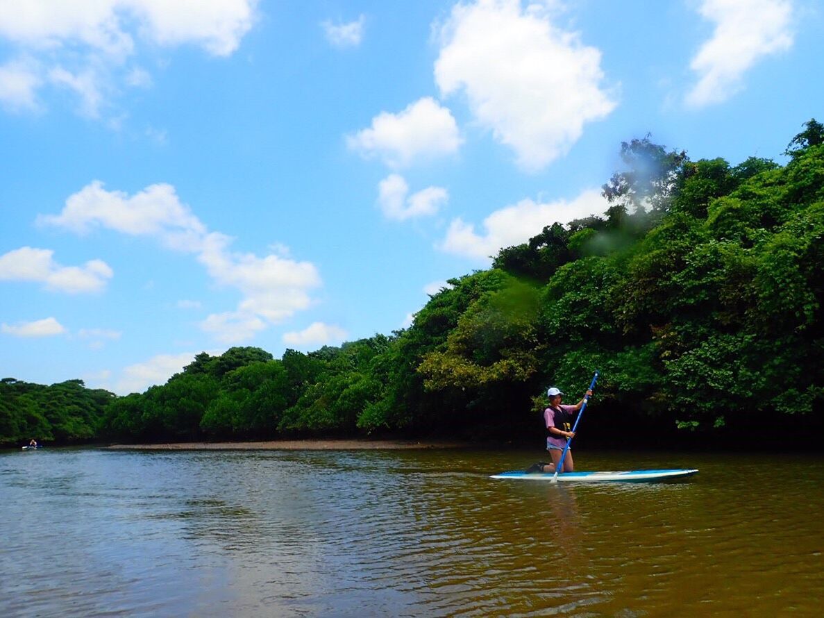 風が強く川平湾でのSUPではなく、川でのSUPとなりましたが十分楽しかったです。