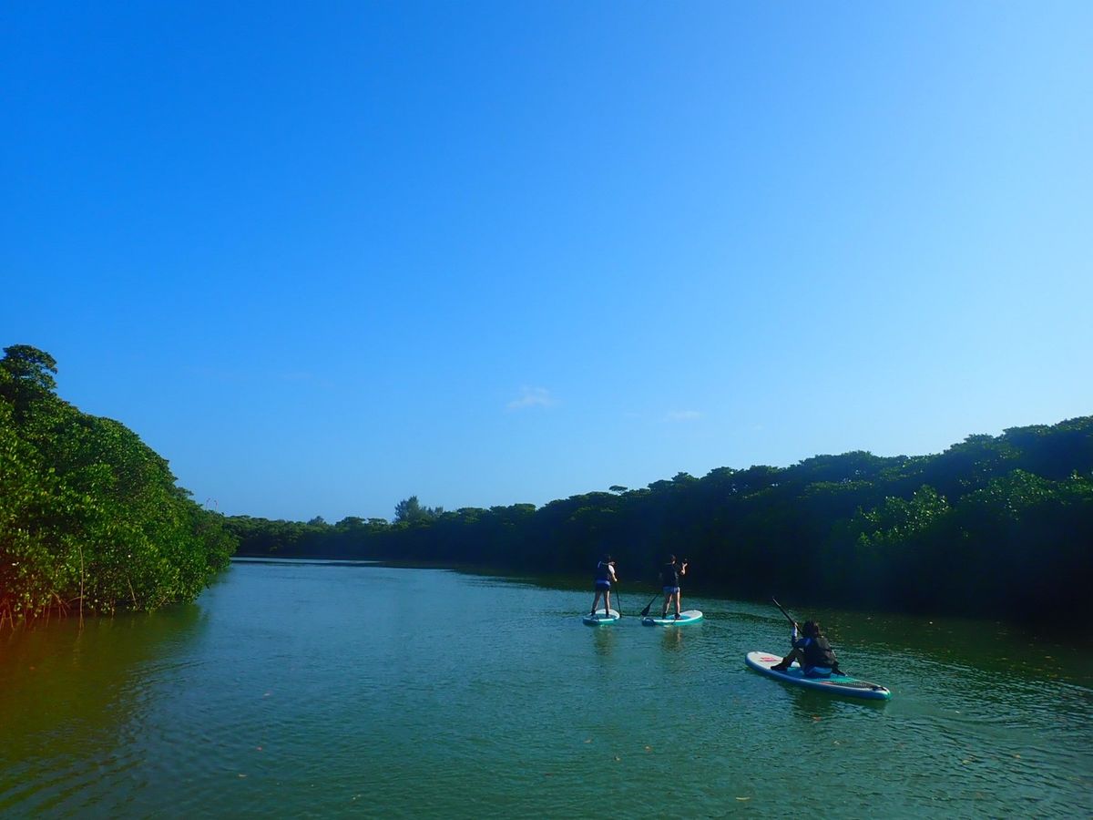 数年前カヌー体験をしましたが、個人的にはカヌーよりもSUPのほうが直感的に操作しやすかったです。マングローブの木々がある場所は座ったまま伏せて通り抜けていました。