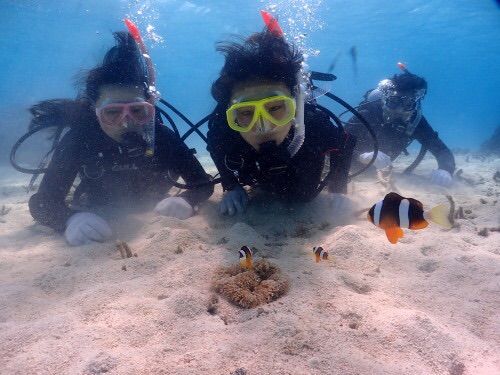 今回初めてのダイビングということで不安も大きかったですが、フレンドリーなガイドさんたちが丁寧に指導をして下さり、とても楽しい時間を過ごすことが出来ました。