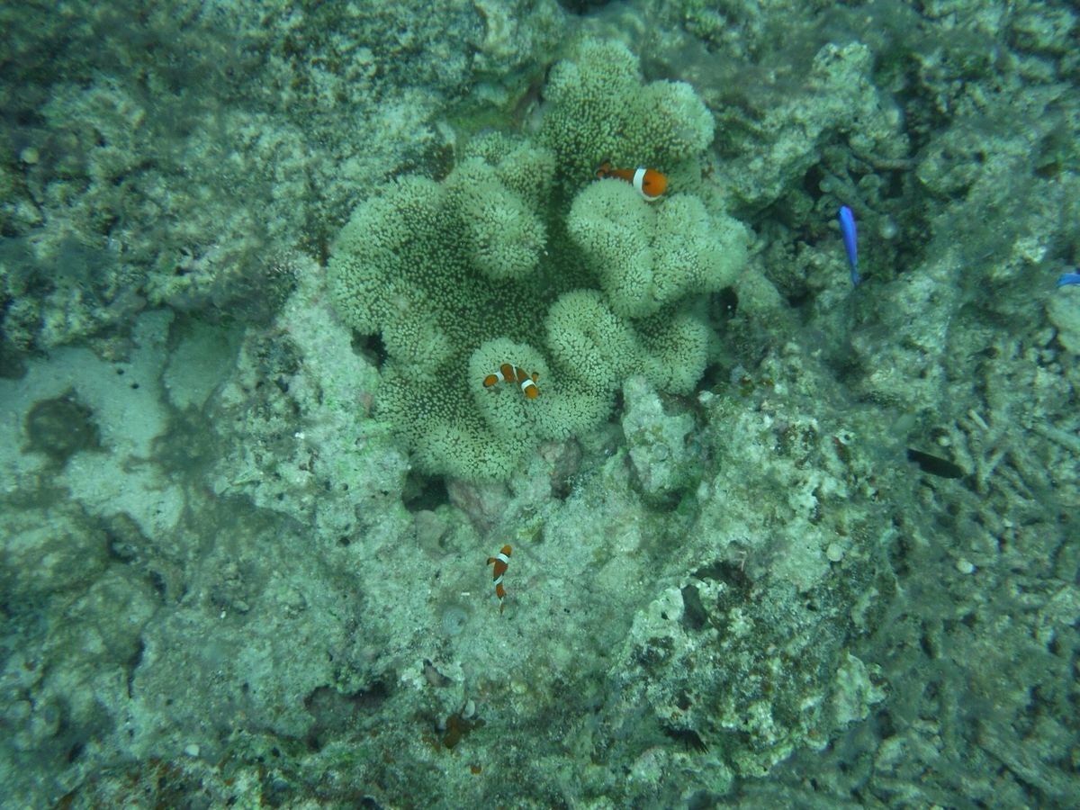港横のビーチでした。入って少し泳ぐと珊瑚が現れて、奥に進んでいくとさらに増えていきます。クマノミたちを案内してもらった後は自由に泳がせてもらえました。70歳の母と一緒だったのですが、シュノーケリング未経験ではありませんが自力でほぼ泳いで無い為、ガイドさんに引っ張ってもらってました。ありがとうございます。