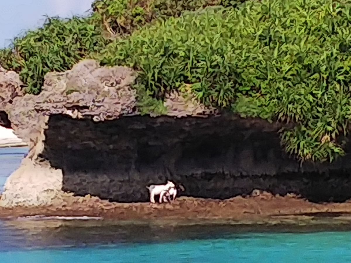 島内散策で野性のヤギや隣島も見える素敵な海の景色も堪能しました。