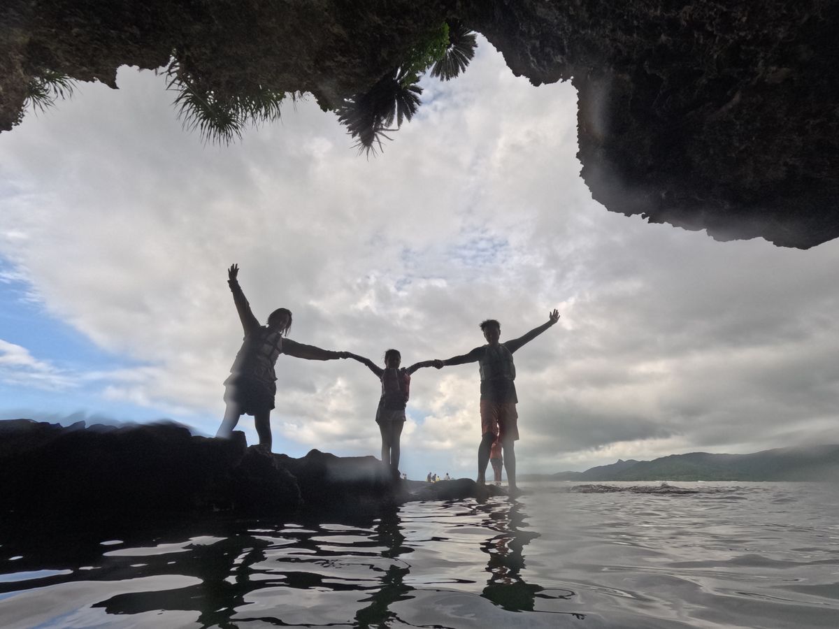 日差しが弱くそこまで青くはないけど、綺麗な洞窟