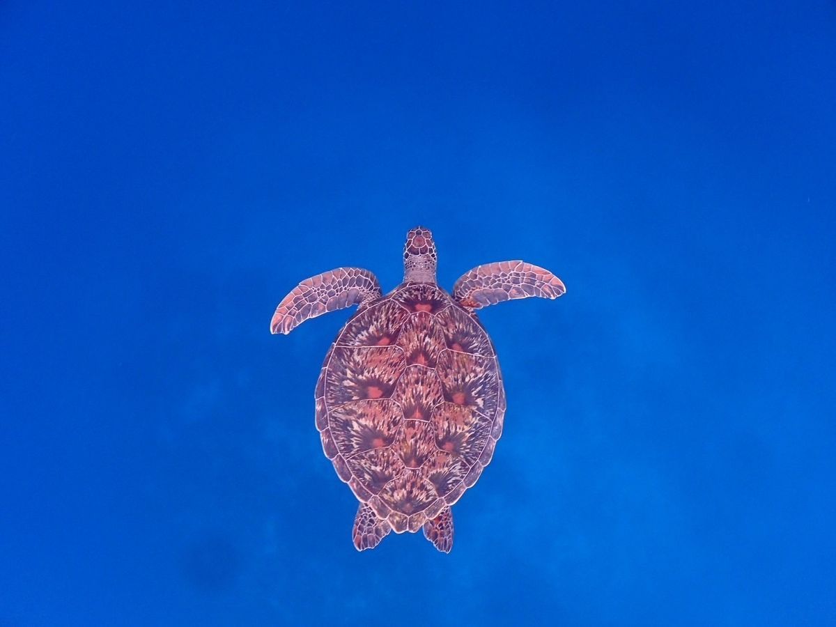 子供の海亀に出会えて、一緒に泳げたよ🎵