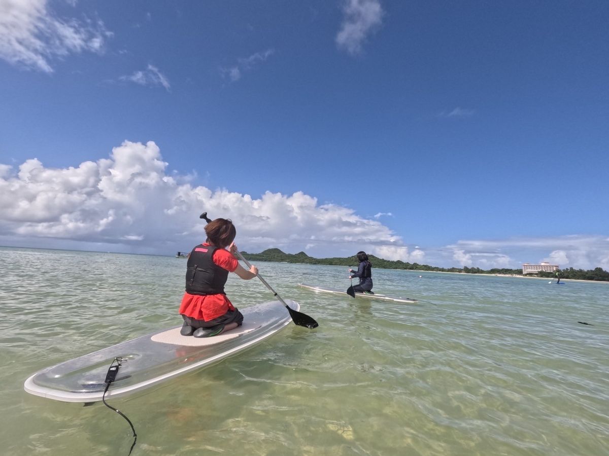 午後のSUP体験も波が穏やかな底地ビーチでのんびり楽しんでいただけて良かったです!美しい海と空、緑に囲まれた景色の中で、気持ちの良い時間を過ごせたようで安心しました🌊🌞