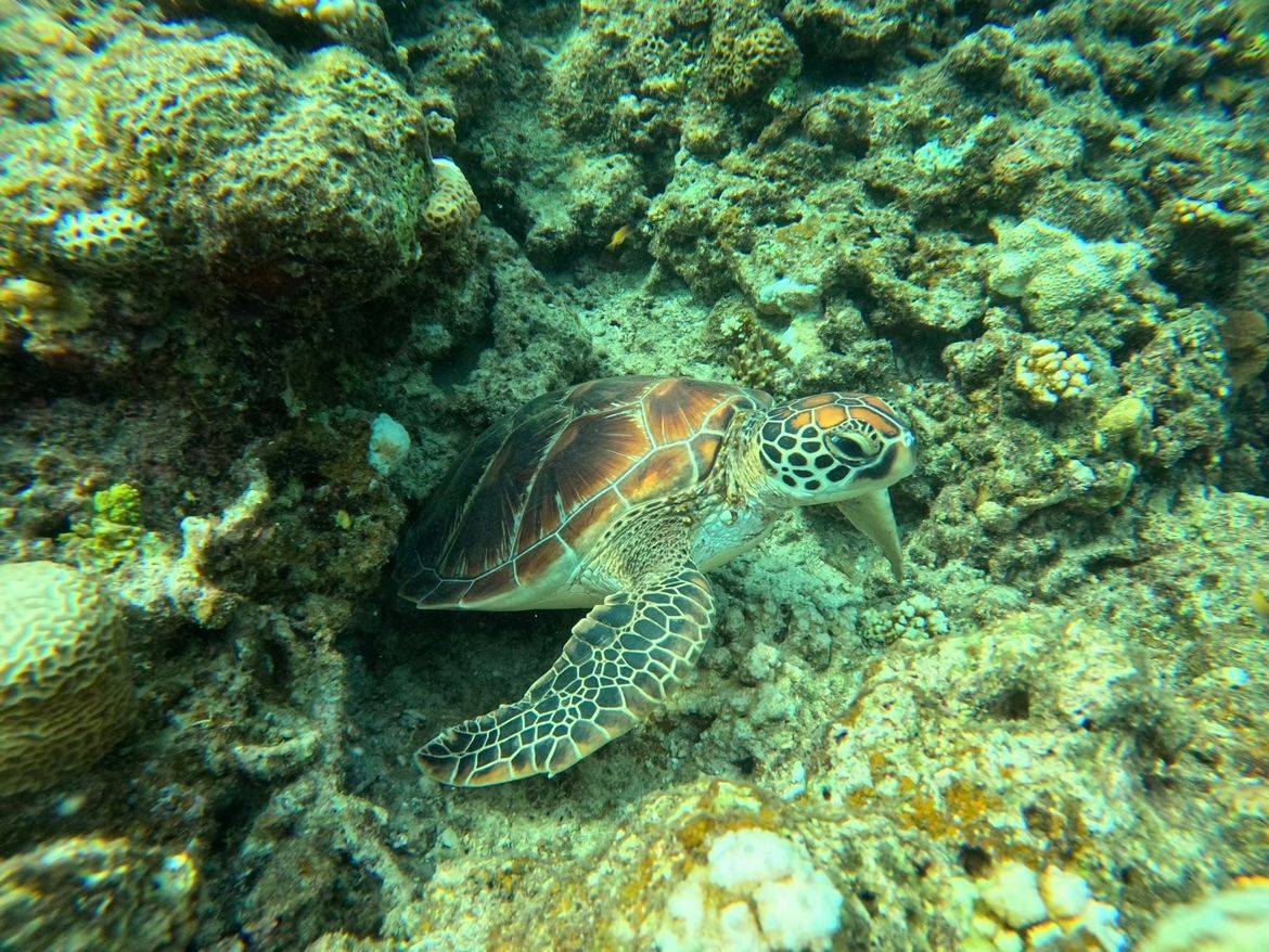 初めてのシュノーケルでウミガメと泳げたのはすごいですよ(笑)