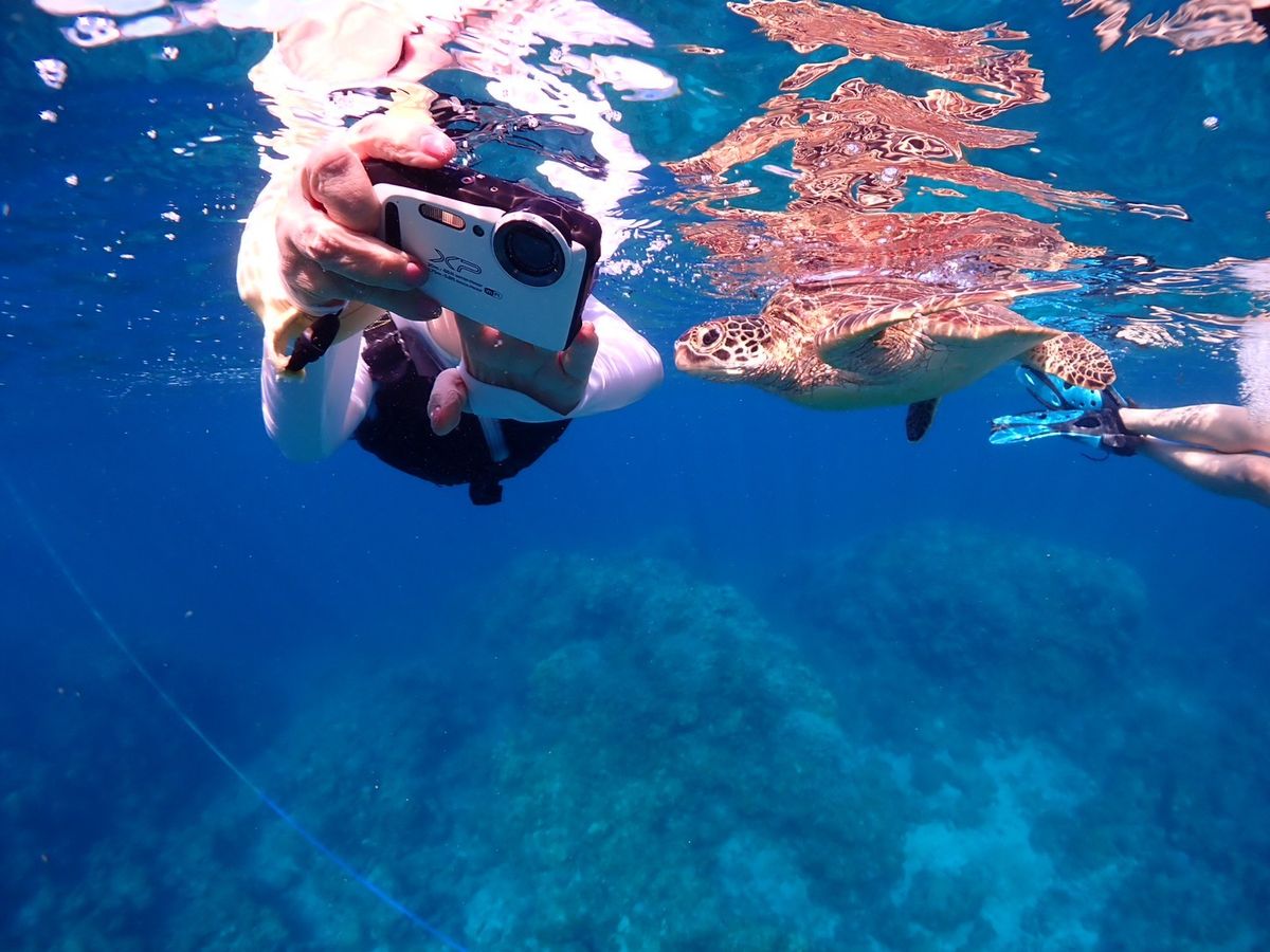 夫婦で参加し、綺麗な海の中でウミガメにも出会い、しかも真横で泳ぐことも出来、とても感動的で最高の体験になりました。