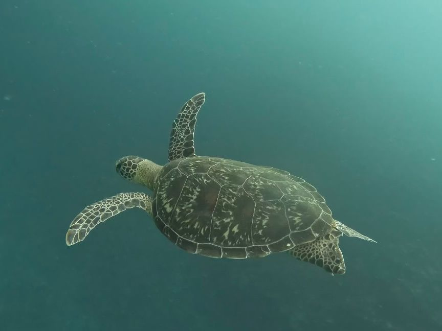 また、ラッキーにもゆったりと泳ぐウミガメにも遭遇でき、その姿をずっーと追いかけつつ、癒されました。