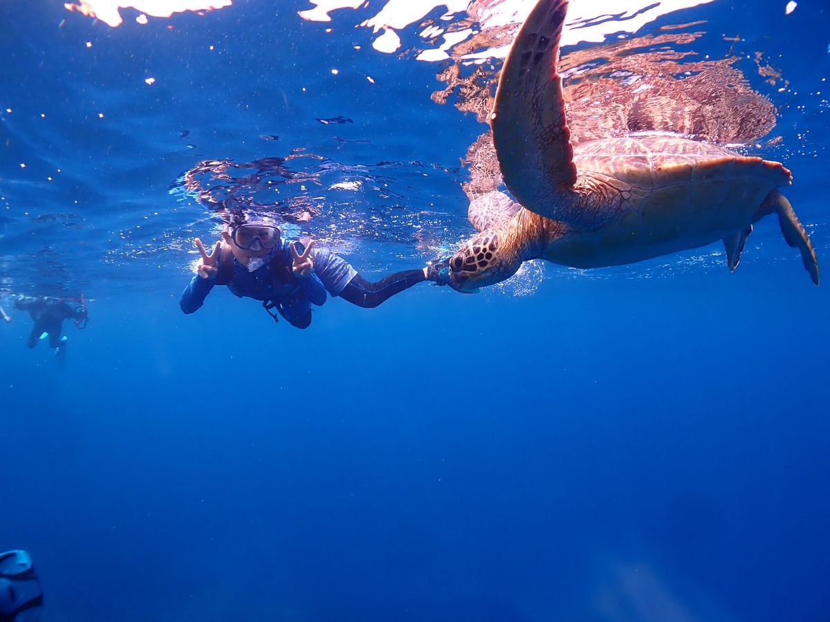 泳ぎどころか顔もつけれなかった私に 丁寧に指導して下さり ウミガメを間近で見ることが出来ました。これは奇跡です。