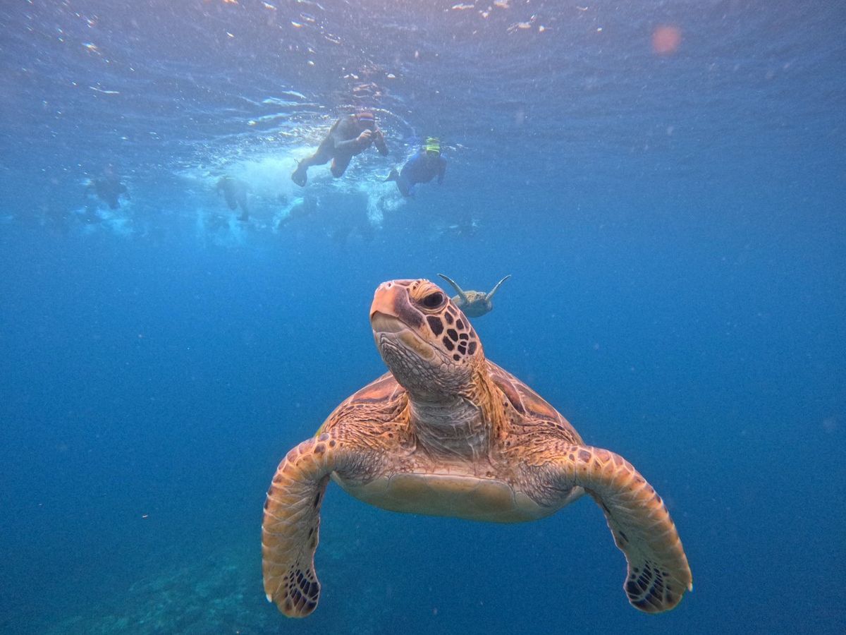 5歳、9歳の子供と参加しました。子供たちは初めてのシュノーケリングでしたが、丁寧に装着方法や注意事項も教えてくれました。ライフジャケットを着用しているとはいえ、娘がちゃんと泳いでいけるか不安でしたがフロートにつかまりながらシュノーケリングをさせてくれたのでこっちは安心してシュノーケリングを楽しめました。ウミガメが水面に上がってくれるタイミングを少し待ったたおかげで本当に近くにウミガメを見ることが出来子供たちも大興奮でした。自分のカメラだとなかなか水中で上手く写真が撮れませんでしたが、ガイドのお兄さんがとても綺麗な写真をたくさん撮ってくれてそれを後ほどスマホに送ってくれるので有り難かったです。