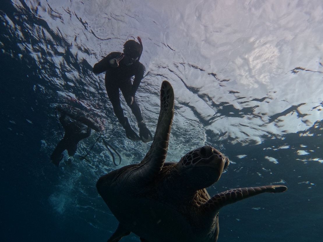 天候の関係で青の洞窟には残念ながら行けませんでしたが、別のポイントでウミガメさんに出会えました!