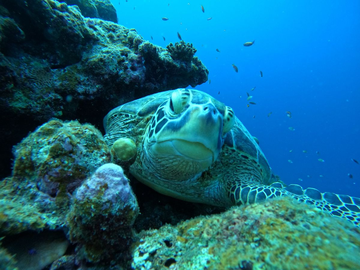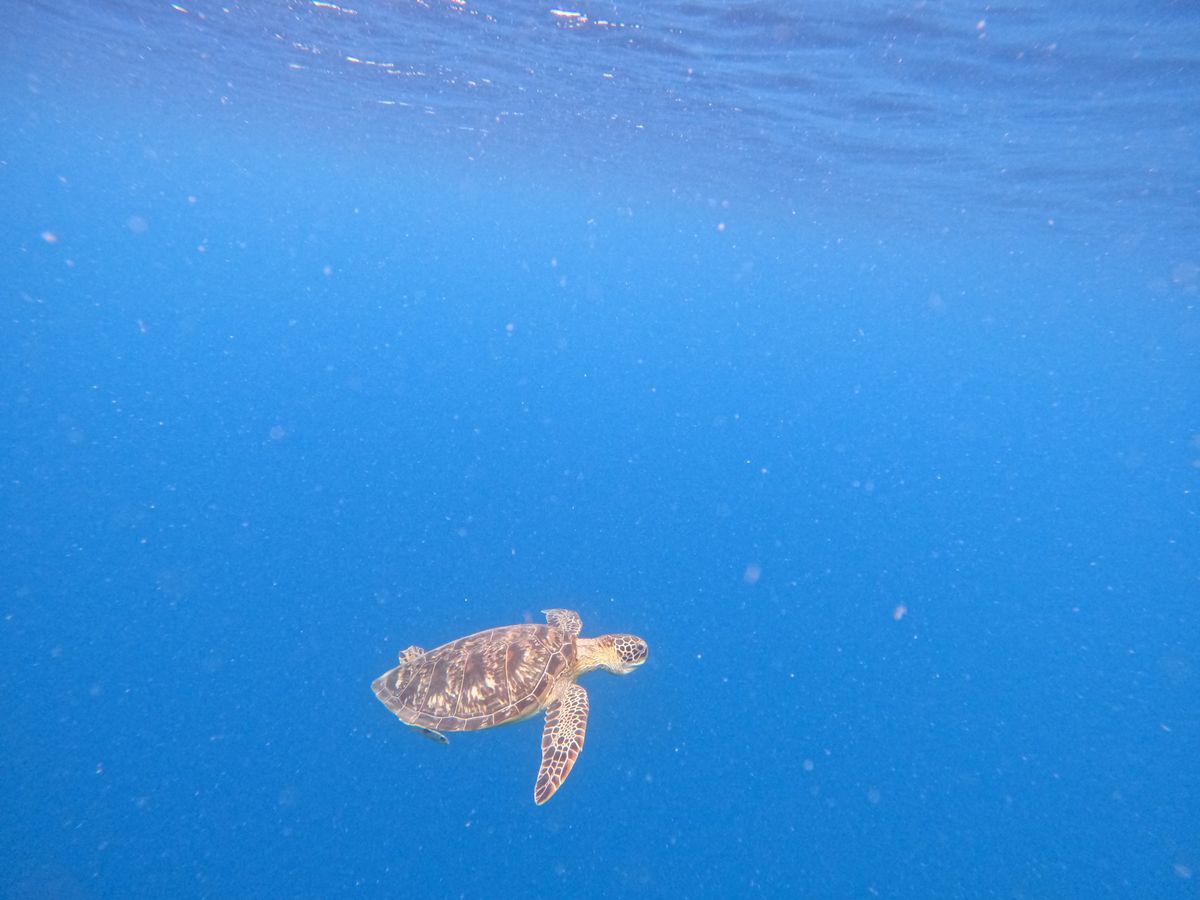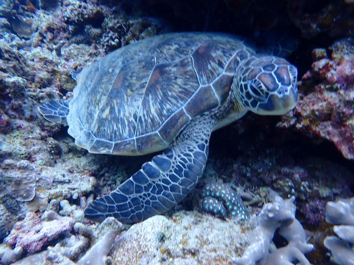 お目当てのウミガメにはバッチリ出会えて、泳いでいるところ、寝ているところ、息継ぎまで至近距離で見ることができて可愛かったです。