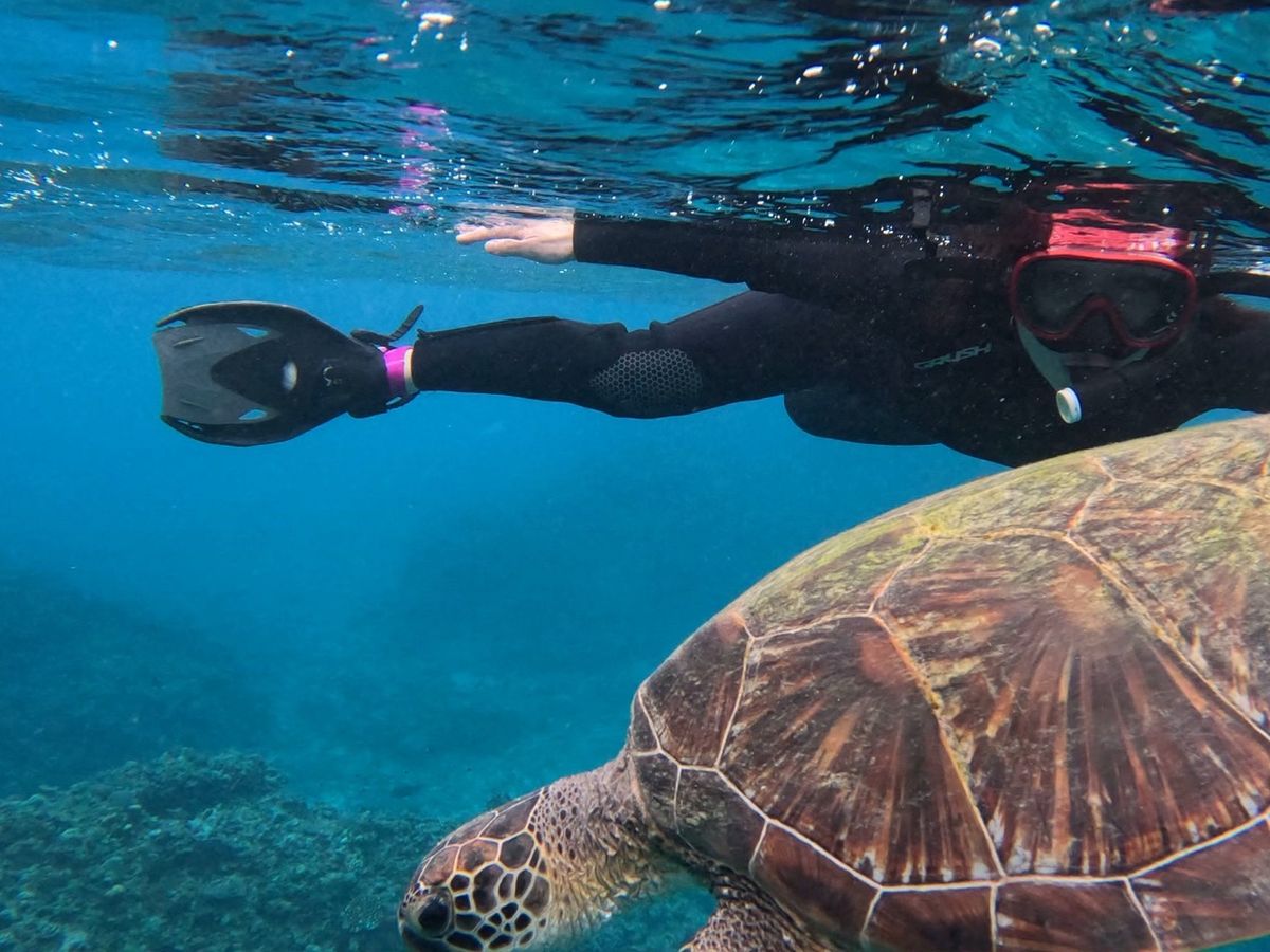 ウミガメ遭遇率が高い場所に案内してくださり、実際ウミガメが泳いでる姿も見ることができました!